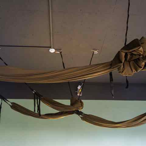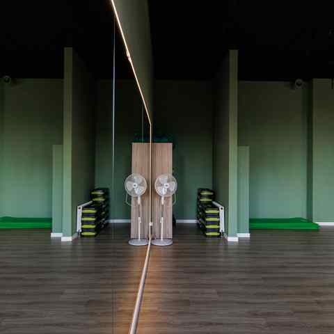 Для занятий предусмотрено современное оборудование: подвесные гамаки, фитнес-коврики, петли, фитболы и инвентарь для функциональных упражнений. Залы рассчитаны максимум на 12 человек каждый, что обеспечивает камерную атмосферу и удобство на тренировках.